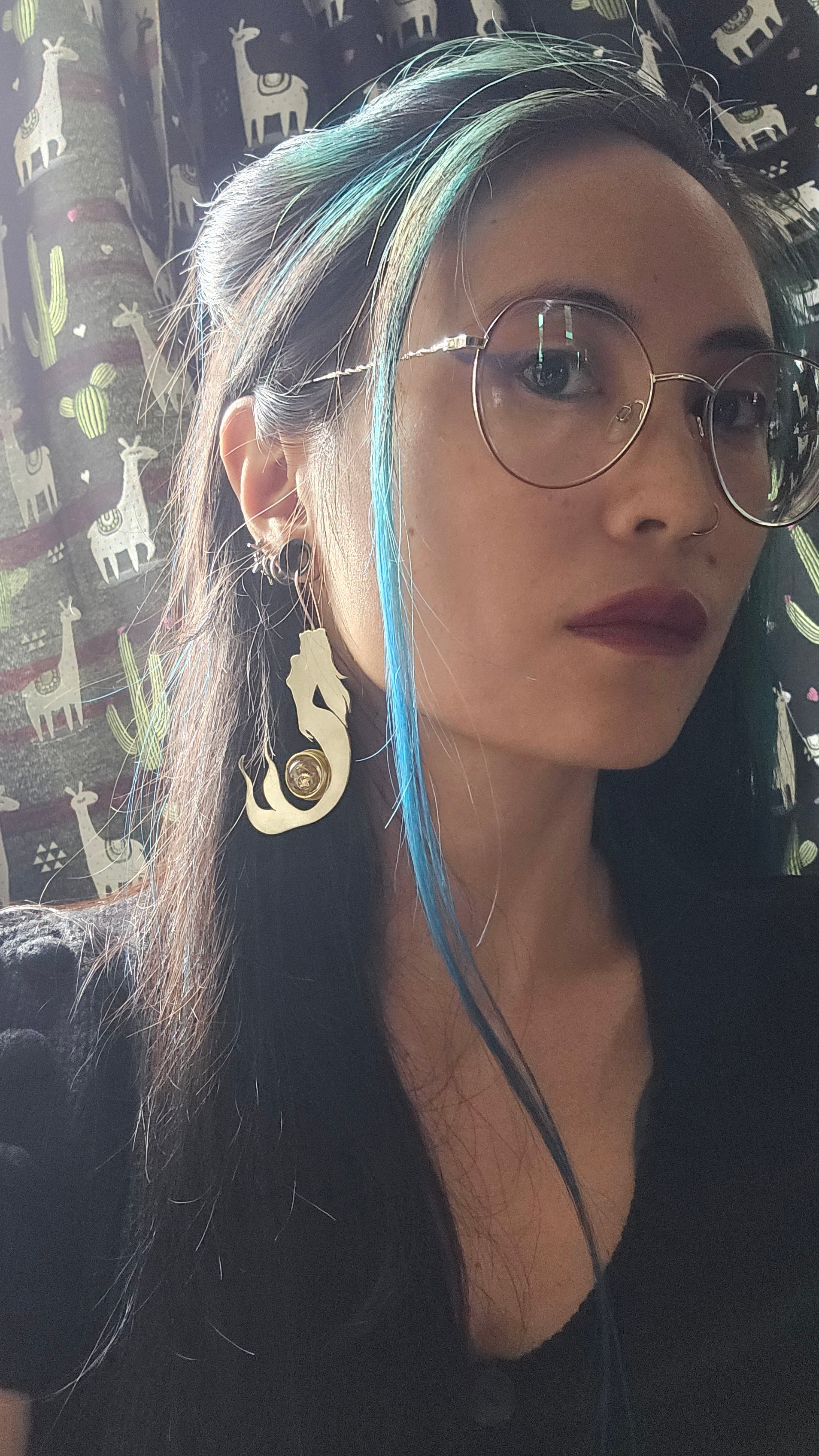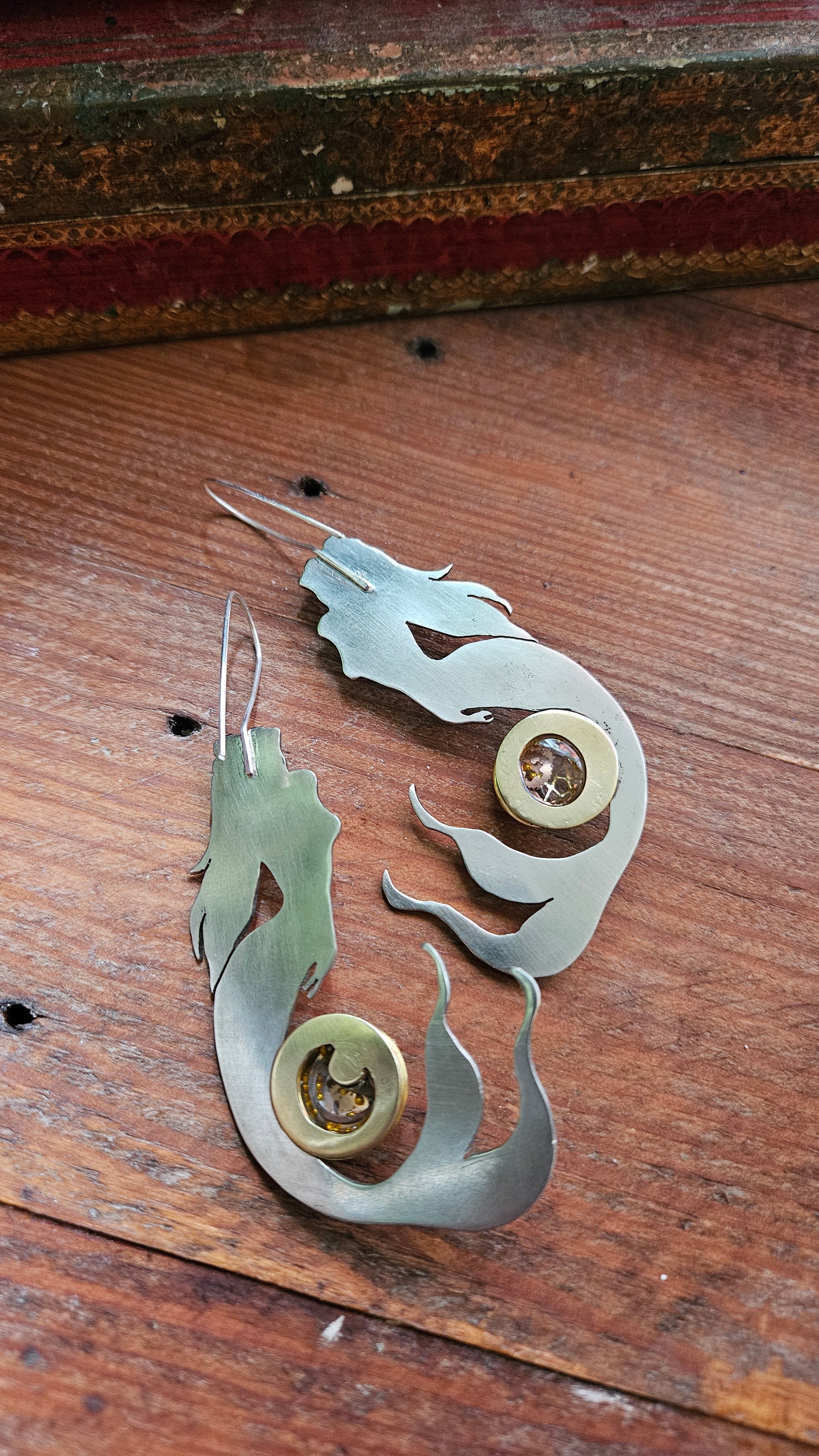 These unique earrings feature elegant mermaid silhouettes cut from durable alpaca metal, paired with real silver hooks for comfort and quality.