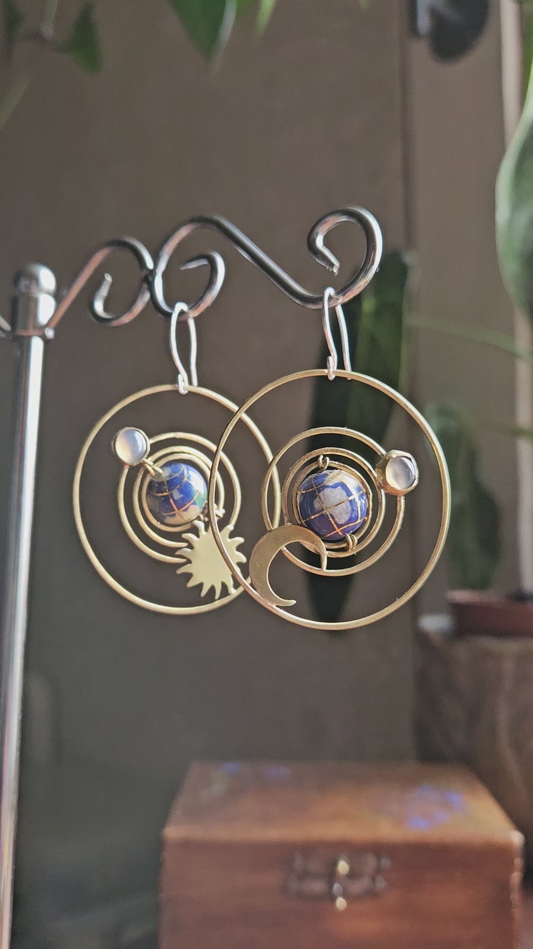 πŸŒ™ Celestial Orbit Earrings, Lapis Lazuli & Brass