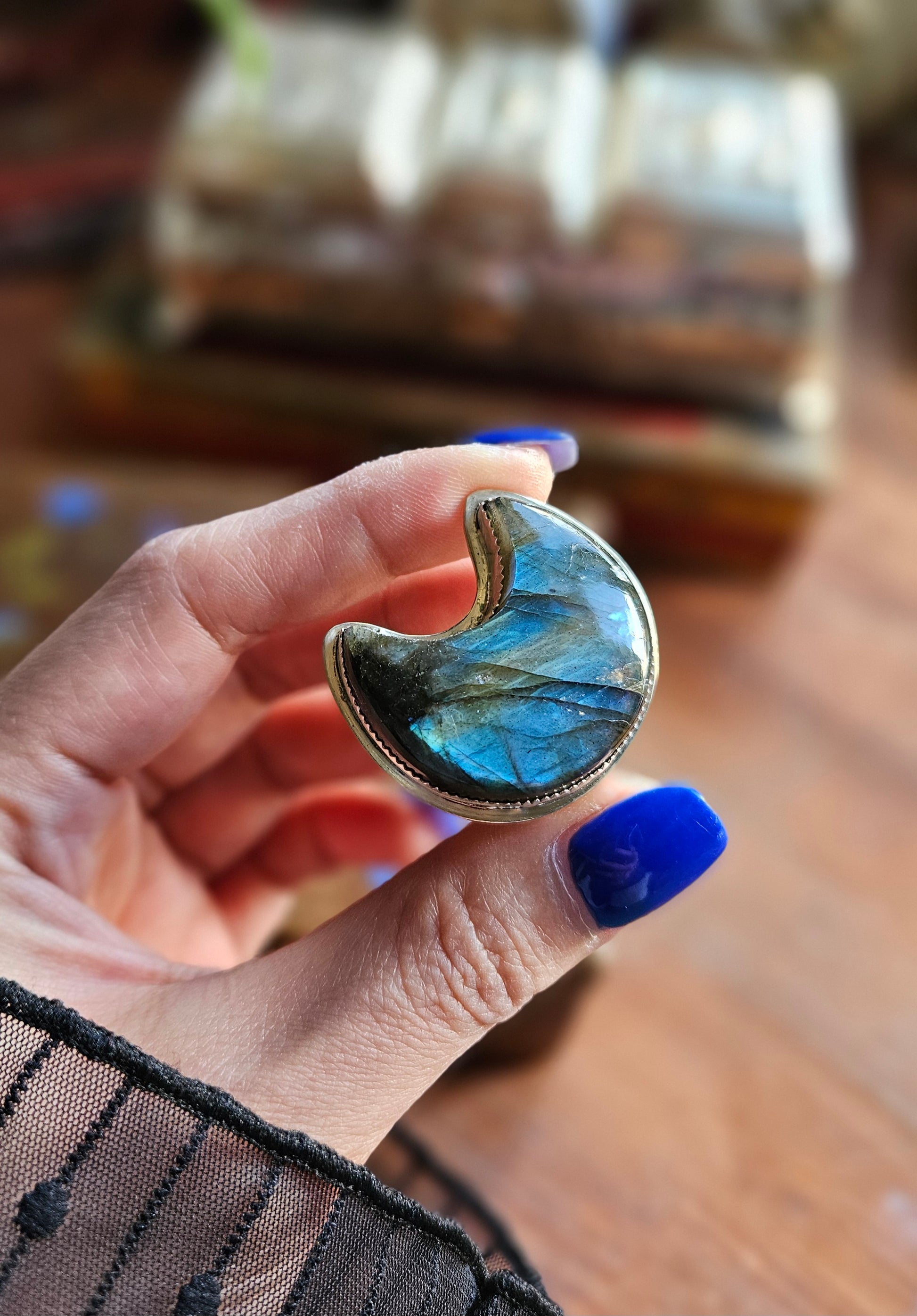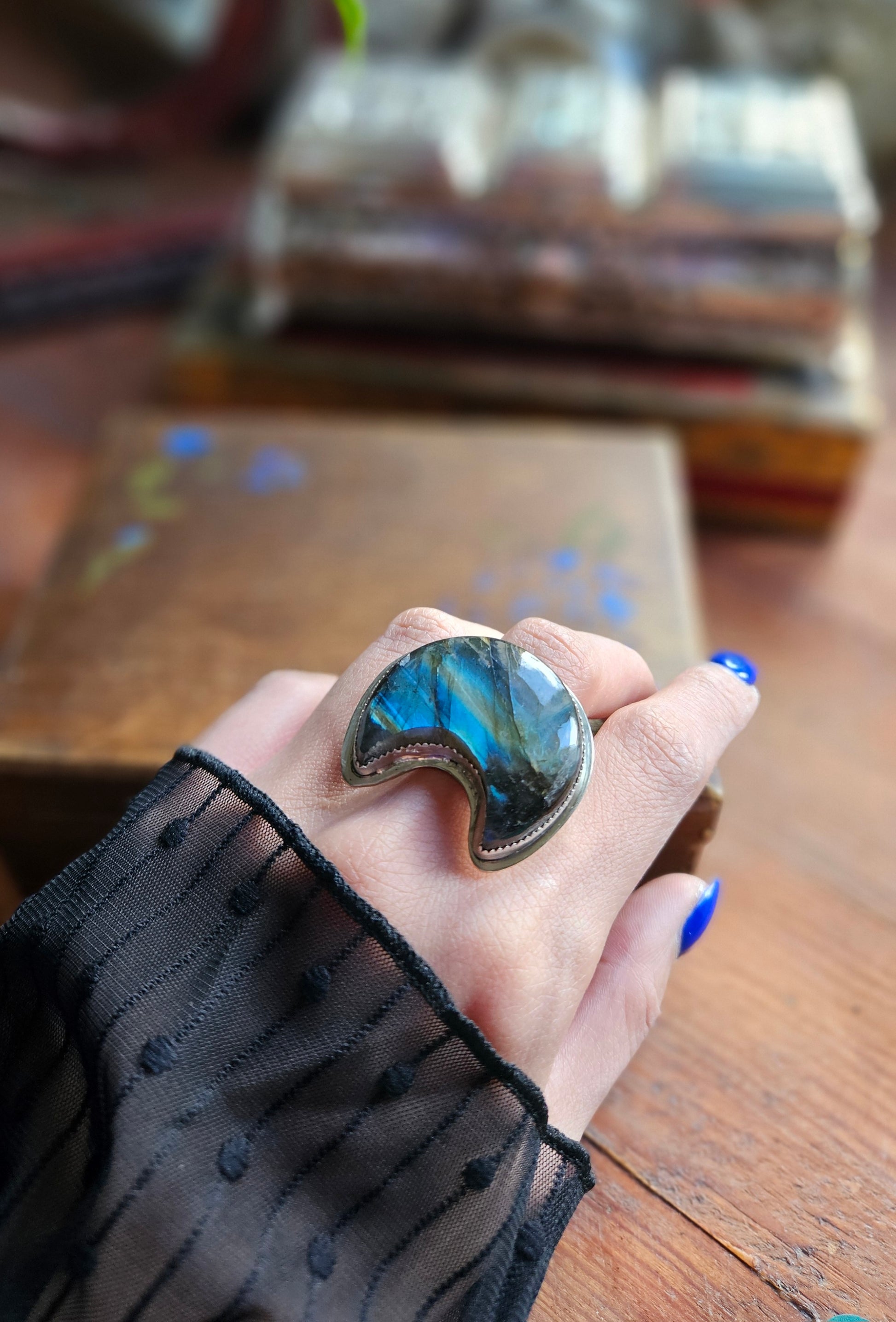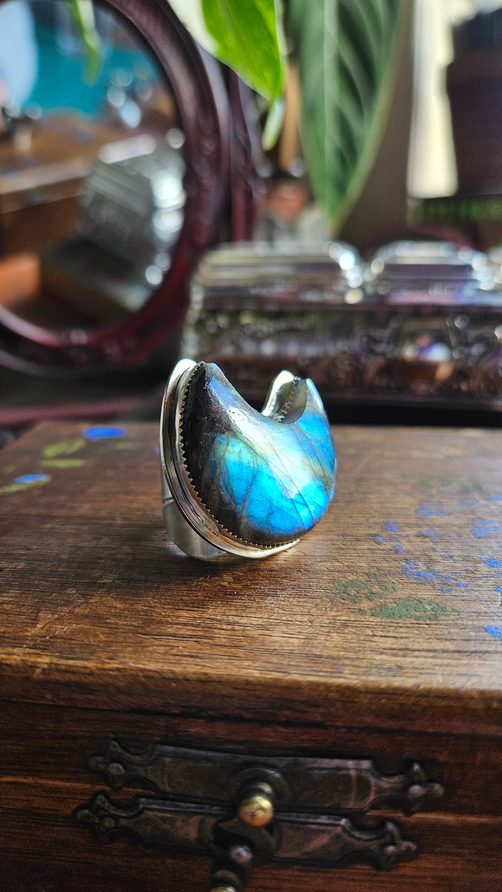Labradorite Moon ring 🌙 Adjustable Silver Statement Piece